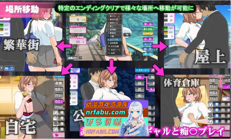 在电车内对辣妹进行性骚扰行为可以积累点数,从而解锁更升级的行为。当快感值达到最大时,辣妹会达到高潮,你便能获得她的心。